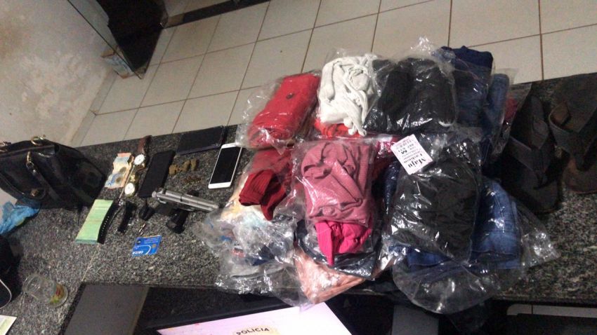 Ao ser capturado, o mesmo confessou que correu por que dentro do carro tinha uma arma fogo. Durante mais buscas foram encontradas tanto a arma de fogo, como também, uma quantidade aproximadamente de 15 gramas de substâncias semelhante a maconha e uma sacola com 35 peças de roupas novas, supostamente furtadas.