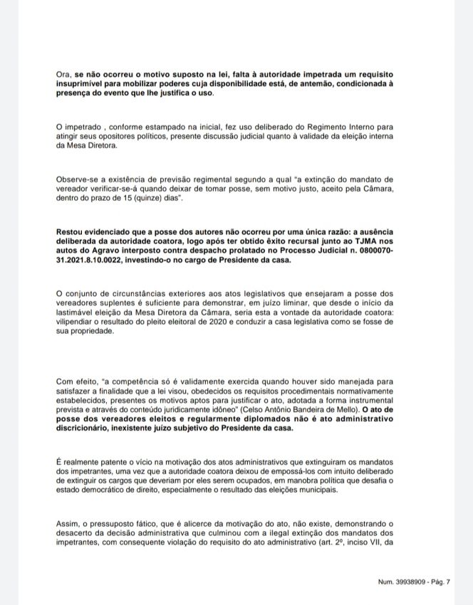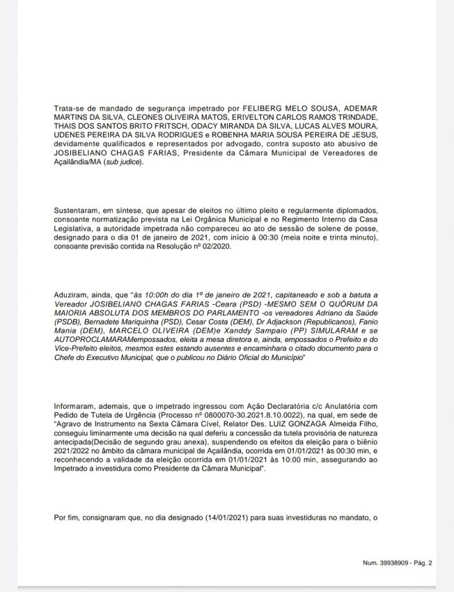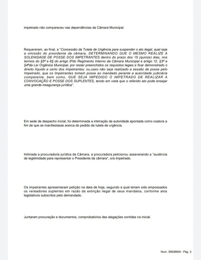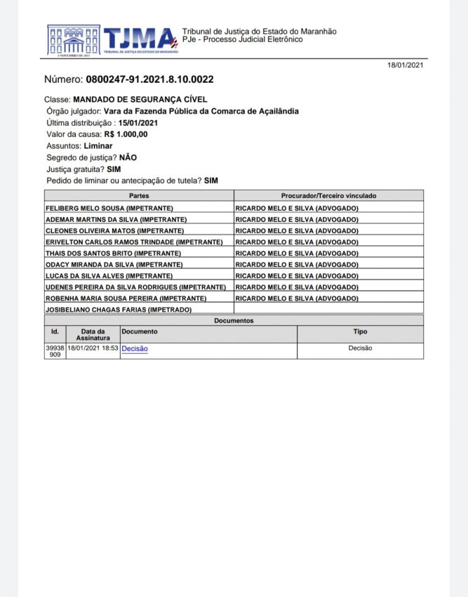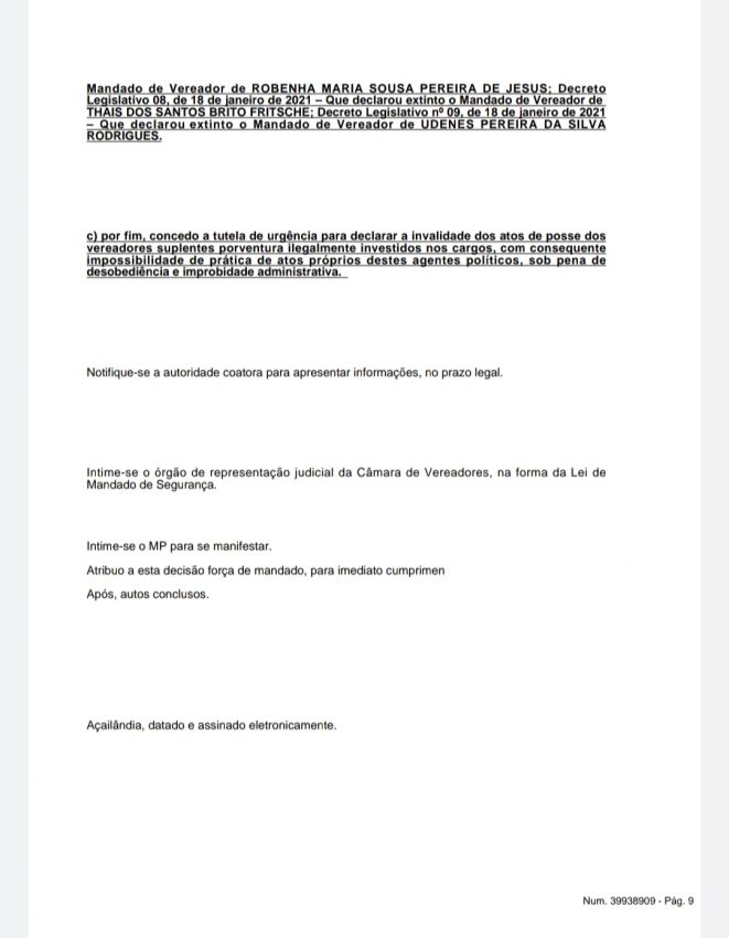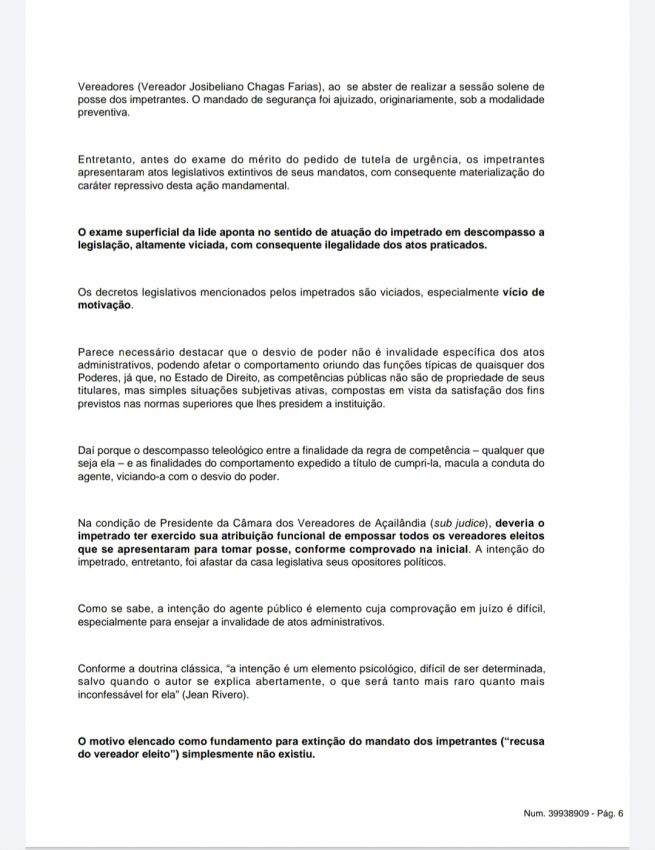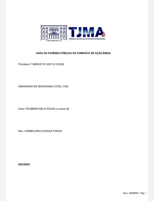 Em mais um capitulo da Novela ''CÂMARA MUNICIPAL DE AÇAILÂNDIA'', juiz da fazenda concede mandato de segurança aos vereadores que haviam tido seus mandatos extintos pelo presidente da câmara municipal nesta segunda-feira 18.