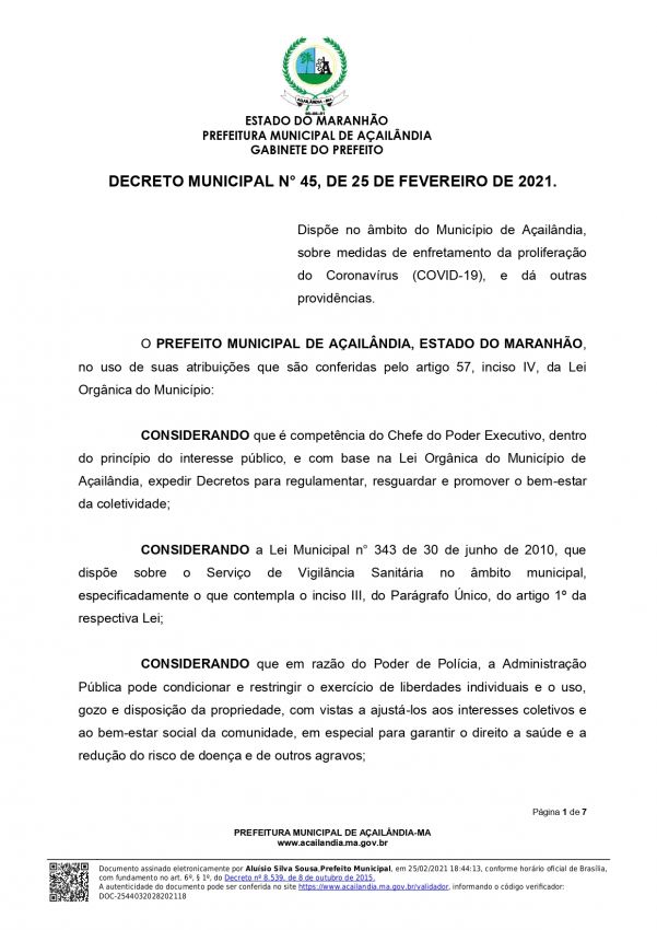 AÇAILÂNDIA - Veja na integra o novo decreto da Prefeitura: