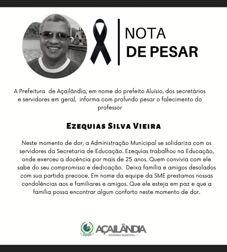 Professor Ezequias Silva Vieira, tinha 52 anos de idade, era natural de Santa Rita Maranhão, mas ha um muito tempo morava em Açailândia e trabalhava como professor na Escola Municipal Eduardo Pereira Duarte, no Pequiá.