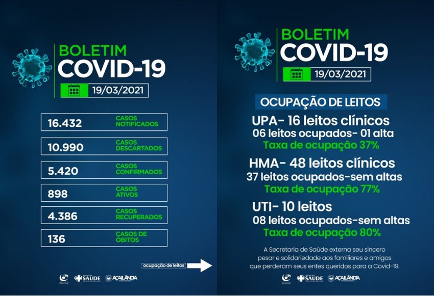 Acompanhe o boletim epidemiológico da Covid-19 em Açailândia – 19 de março*