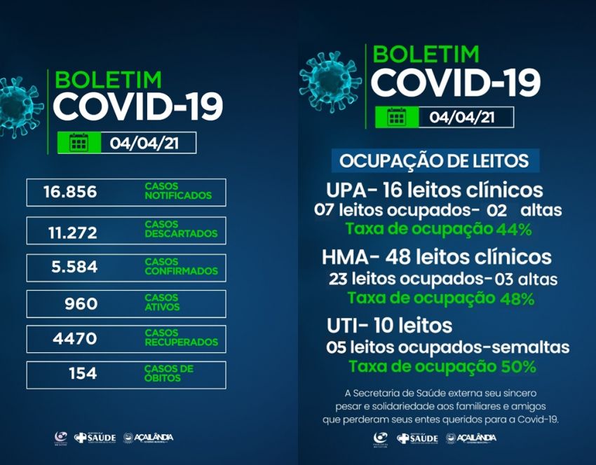 Acompanhe o boletim epidemiológico da Covid-19 em Açailândia – 04 de abril de 2021