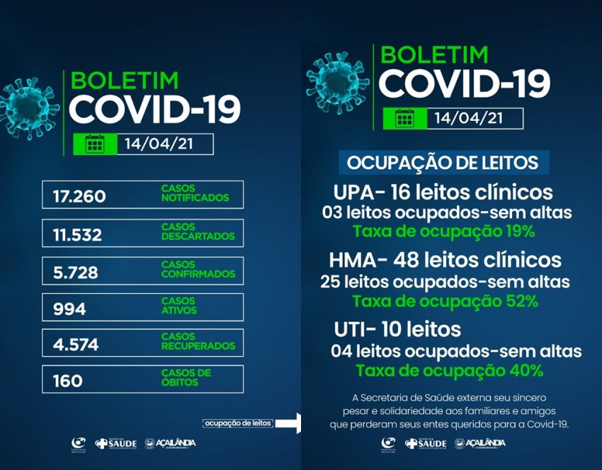 Acompanhe o boletim epidemiológico da Covid-19 em Açailândia – 14 de abril de 2021