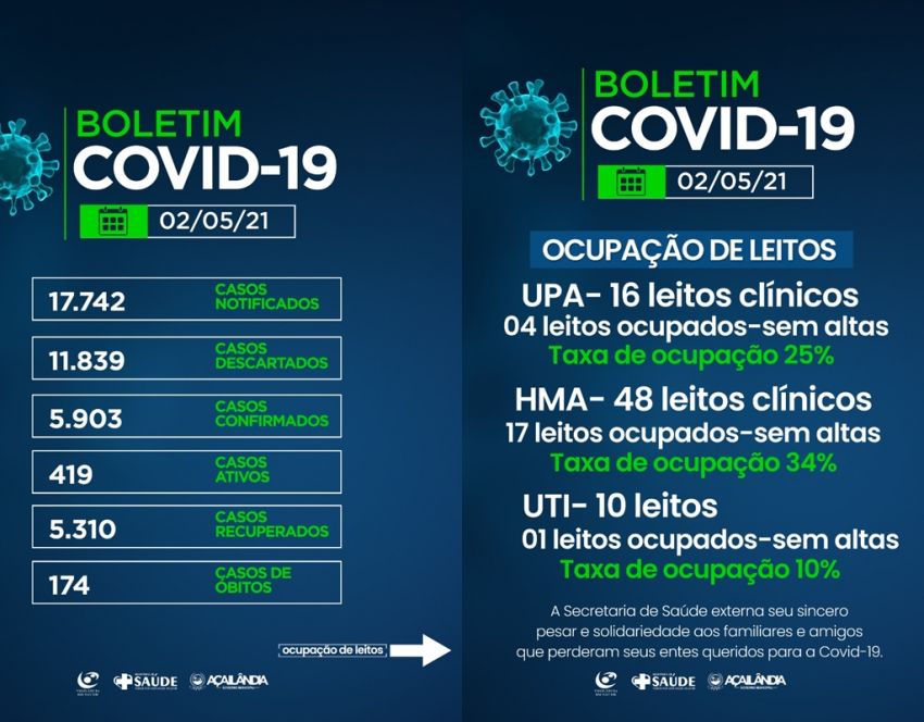 Acompanhe o boletim epidemiológico da Covid-19 em Açailândia – 02 de maio de 2021