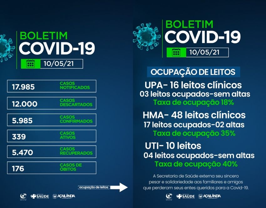 Acompanhe o boletim epidemiológico da Covid-19 em Açailândia – 10 de maio de 2021