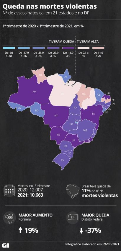 O Maranhão teve um aumento de 11,5% nos assassinatos nos primeiros três meses deste ano na comparação com o mesmo período de 2020. É o que mostra o índice nacional de homicídios criado pelo G1, com base nos dados oficiais dos 26 estados e do Distrito Federal.