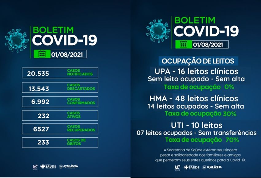 Acompanhe o boletim epidemiológico da Covid-19 em Açailândia – 1° de agosto de 2021