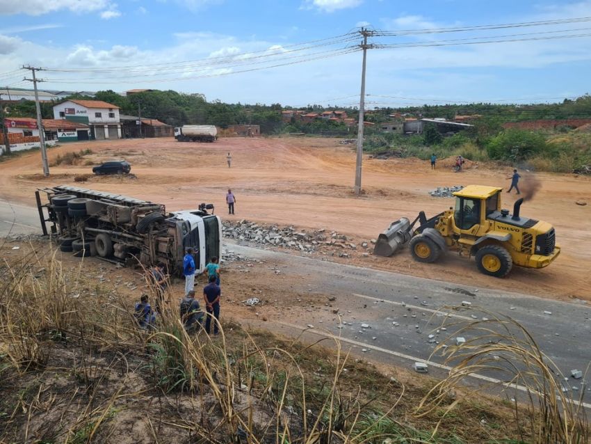 No início da tarde da última quarta-feira (10), um caminhão colidiu contra um poste e acabou tombando no km 03 da BR-135, em São Luís.