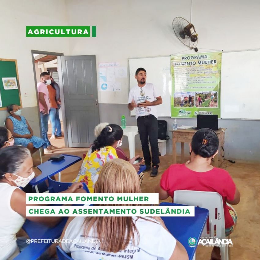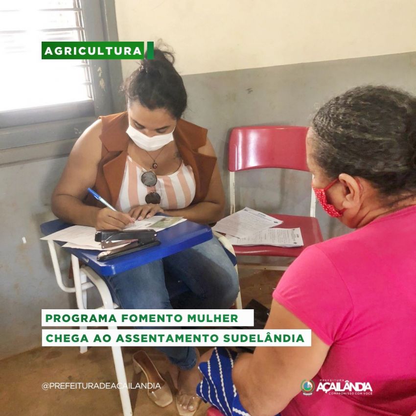 Dando continuidade ao trabalho de lançamento, seguido do cadastramento do programa “Fomento Mulher”, os servidores da Secretaria Municipal de Agricultura e Pesca estiveram no Assentamento Sudelândia - 50 BIS, reunindo com mulheres assentadas da localidade.