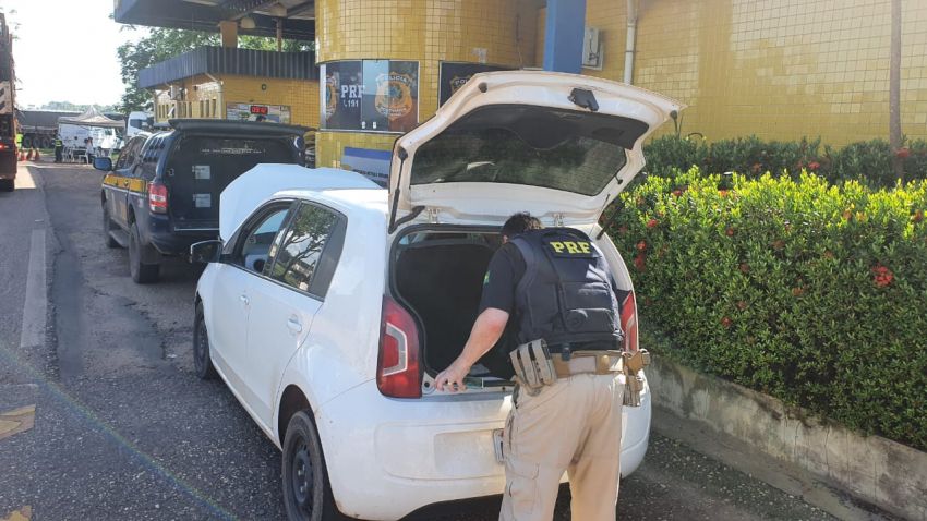 No início da fiscalização, a equipe constatou que os elementos identificadores do veículo apresentavam indícios de adulteração. Após isso, a equipe verificou que o automóvel tinha registro de roubo em 30/11/2016 em Salvador/BA.