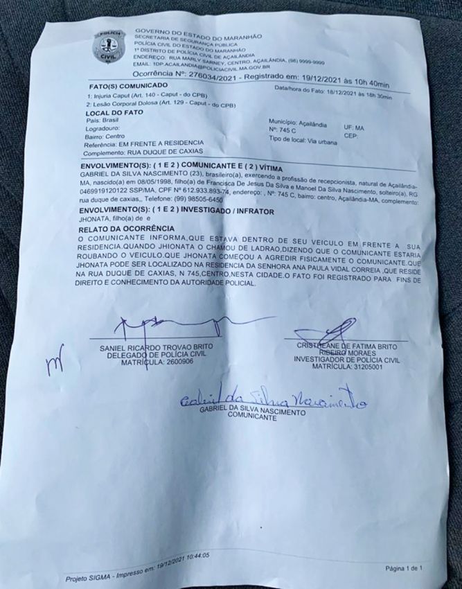 O rapaz, já registrou um B.O e vai acionar a justiça.