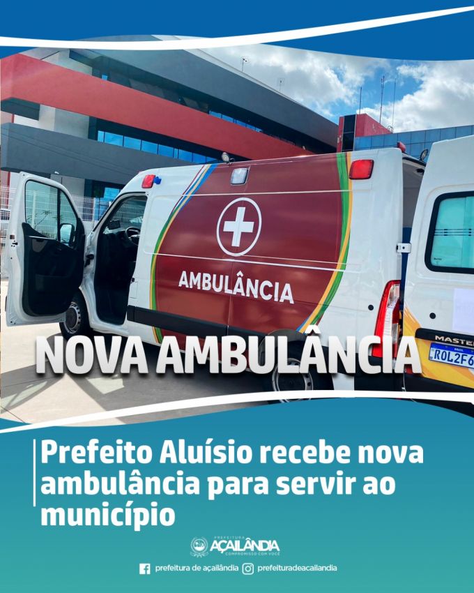 A ambulância destinada ao município é do ano e modelo 2022, tipo van e possui todos os equipamentos necessários para a condução adequada no transporte de pacientes. As chaves da ambulância foram entregues nas mãos do prefeito Aluísio.