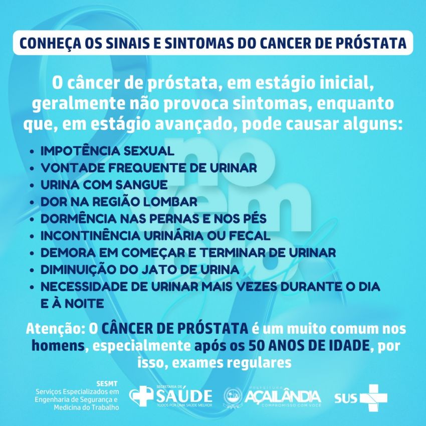 Atenção: O CÂNCER DE PRÓSTATA é um muito comum nos homens, especialmente após os 50 ANOS DE IDADE, por isso, exames regulares após os 40 anos são fundamentais para diagnosticar a doença na fase inicial.