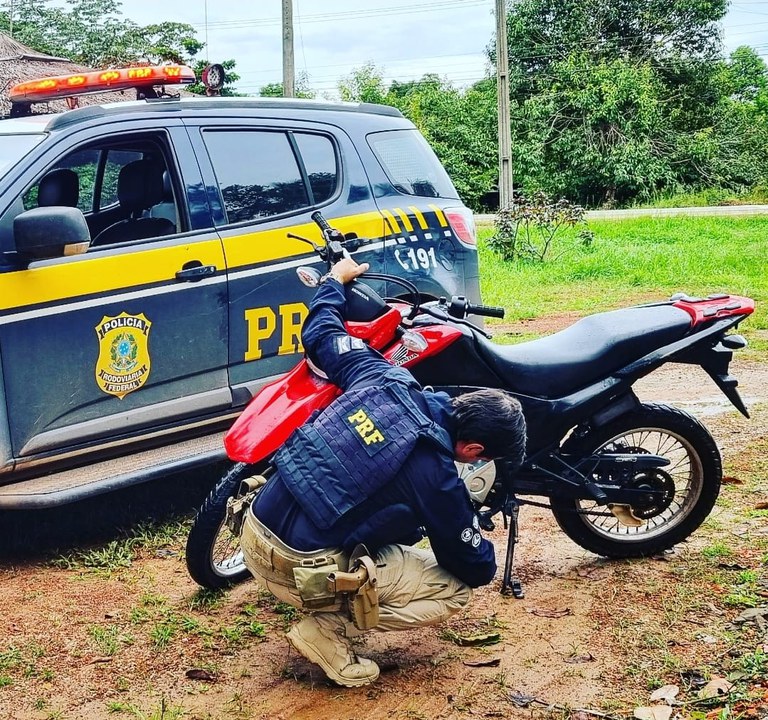No primeiro caso, os policiais realizaram a fiscalização do veículo e verificaram que a motocicleta estava com alguns elementos de identificação adulterados. Após consultas nós Sistemas da PRF, identificaram um registro de ocorrência de roubo da moto.