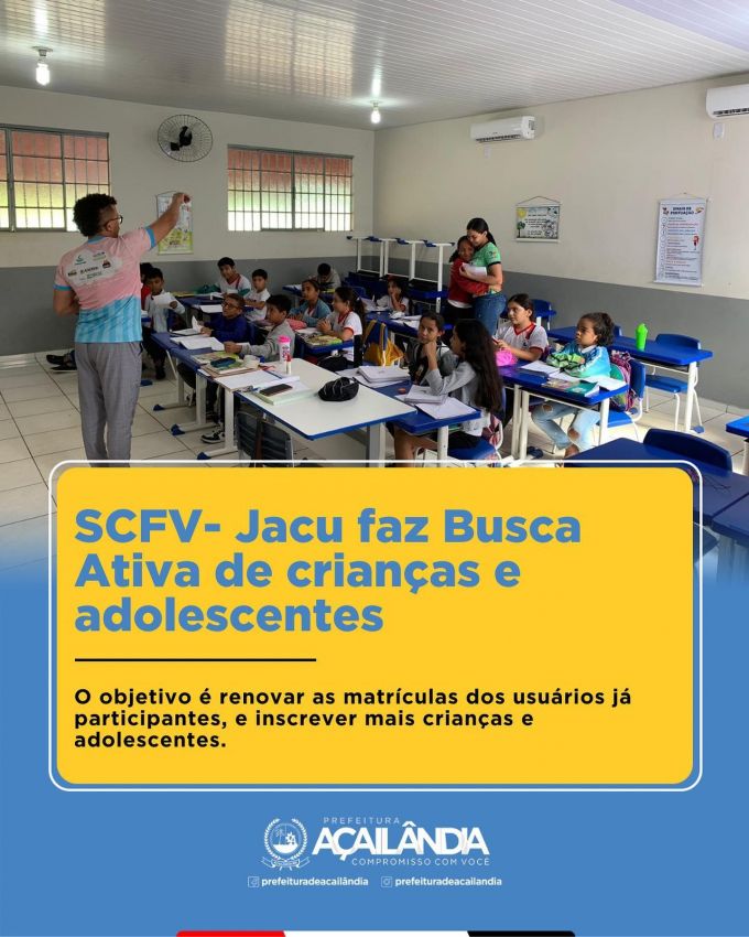 Esta semana, pensando na execução de ações que previnem a ocorrência de vulnerabilidades e riscos sociais para proporcionar o fortalecimento de vínculos familiares, a Secretaria de Assistência Social, via Serviço de Convivência e Fortalecimento de Vínculos – SCFV Jacu, órgãos da Prefeitura de Açailândia, iniciou a Busca Ativa aos usuários veteranos e novatos com intuito de renovar as inscrições para participarem das oficinas socioeducativas disponibilizadas pelo SCFV neste ano.
