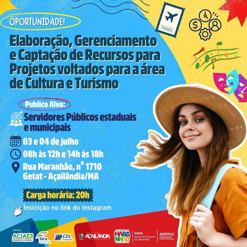 Estão abertas as inscrições para o curso de “Comunicação e Oratória” e “Elaboração, Gerenciamento e Captação de Recursos para Projetos para a área de Cultura e Turismo”, acontecerá na rua Maranhão, 1710, Getat - Açailândia/MA