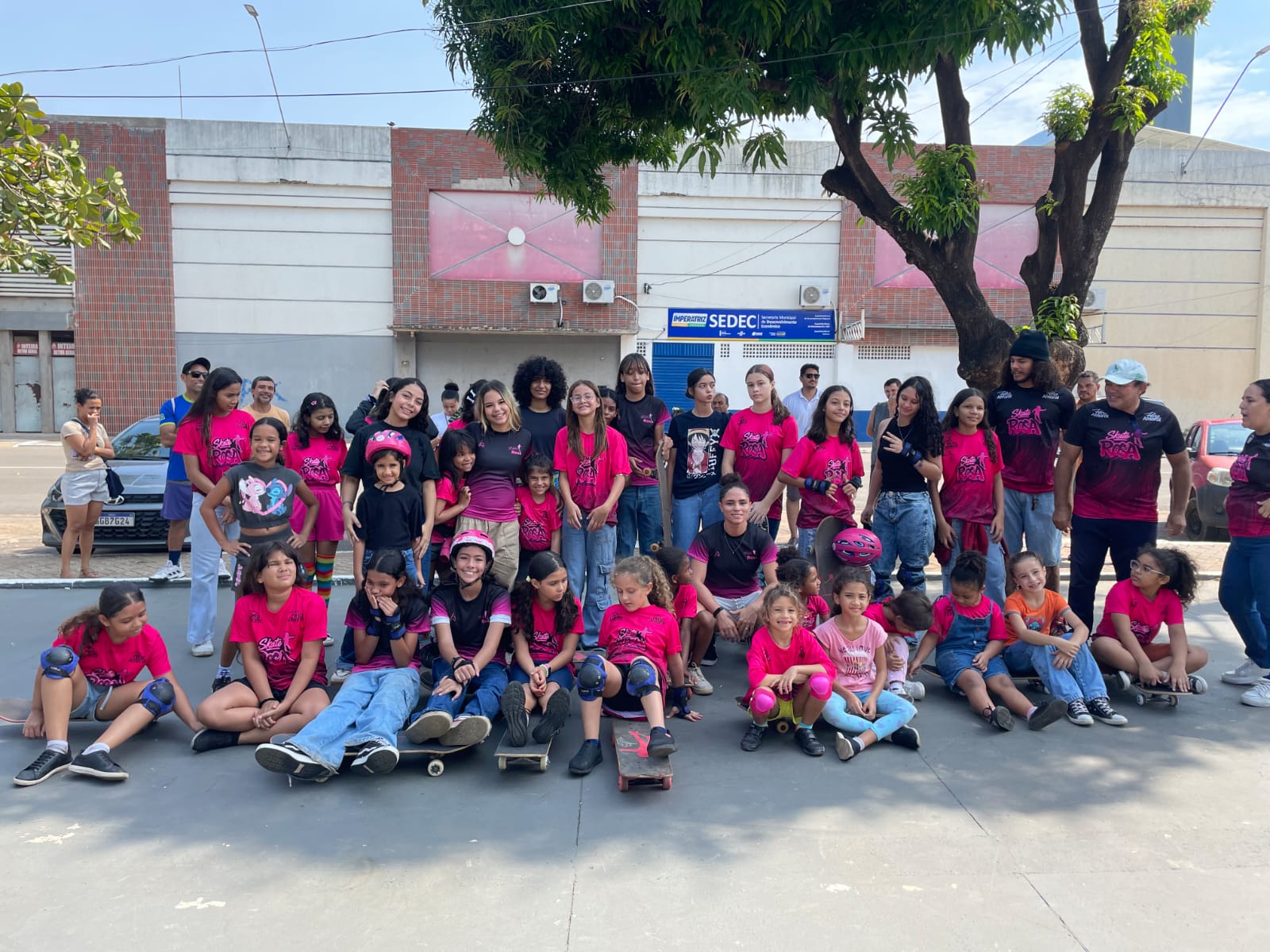 O projeto social Skate Rosa, que oferece aulas gratuitas de skate para meninas em Imperatriz, recebeu, no último sábado (22), a visita da Rayssa Leal.As aulas acontecem todos os sábados, das 8h às 10h, na pista da Praça Mané Garrincha.