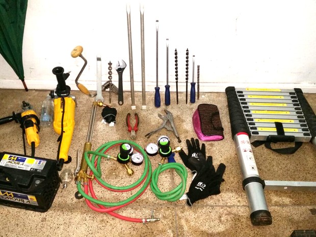 Com eles, foram apreendidos maçaricos e cilindros de gás, instrumentos, uma bateria de carro e pelo menos uma arma de fogo. Segundo a Seic, a quadrilha estaria pronta para arrombar uma agência bancária na cidade.