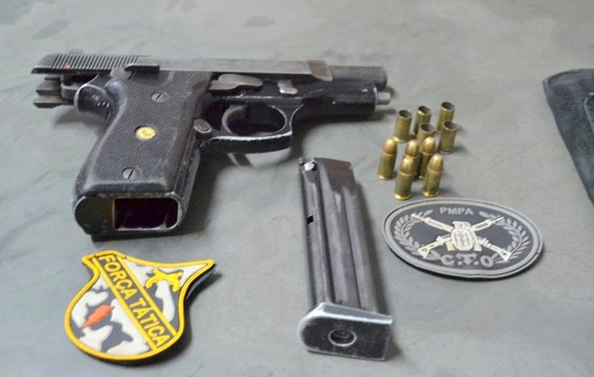 Segundo o Delegado, Thiago Filippini, reforçou que ao abordar o ACUSADO auxiliado pela GUARNIÇÃO DA FORÇA TÁTICA DA PM encontraram em poder do mesmo a ARMA DO CRIME com cinco 05 munições intactas, naquele momento se ele quisesse reagir contra os policias poderia ter feito, uma vez que a PISTOLA ainda estava municiada. Com muita cautela O DELEGADO THIAGO FILLIPINI acompanhado do CABO FERNANDO DA FORÇA TÁTICA (FT) entre OUTROS POLICIAIS MILITARES E CIVIS se aproximaram do autor e efetuaram a prisão.