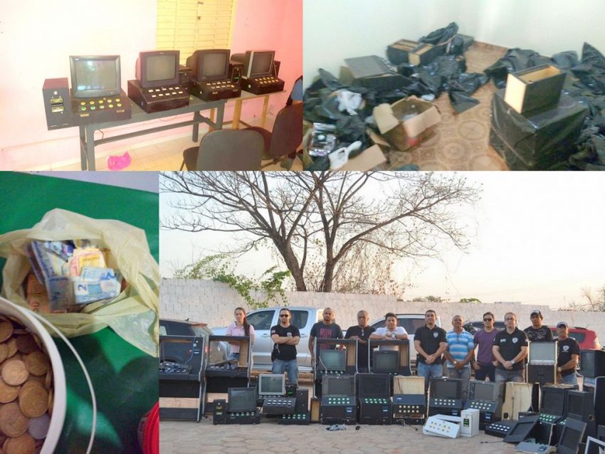 Realizado na tarde de ontem (20/09), com quebra de 6 pontos de maquinas caça-níqueis, foram apreendidas 35 máquinas em funcionamento, 36 carcaça de maquinas, e muitos componentes eletrônicos, com uma quantia ainda não contada em dinheiros, que ultrapassam a R$ 5 mil e também um revólver calibre 38 e uma caminhonete HILUX .