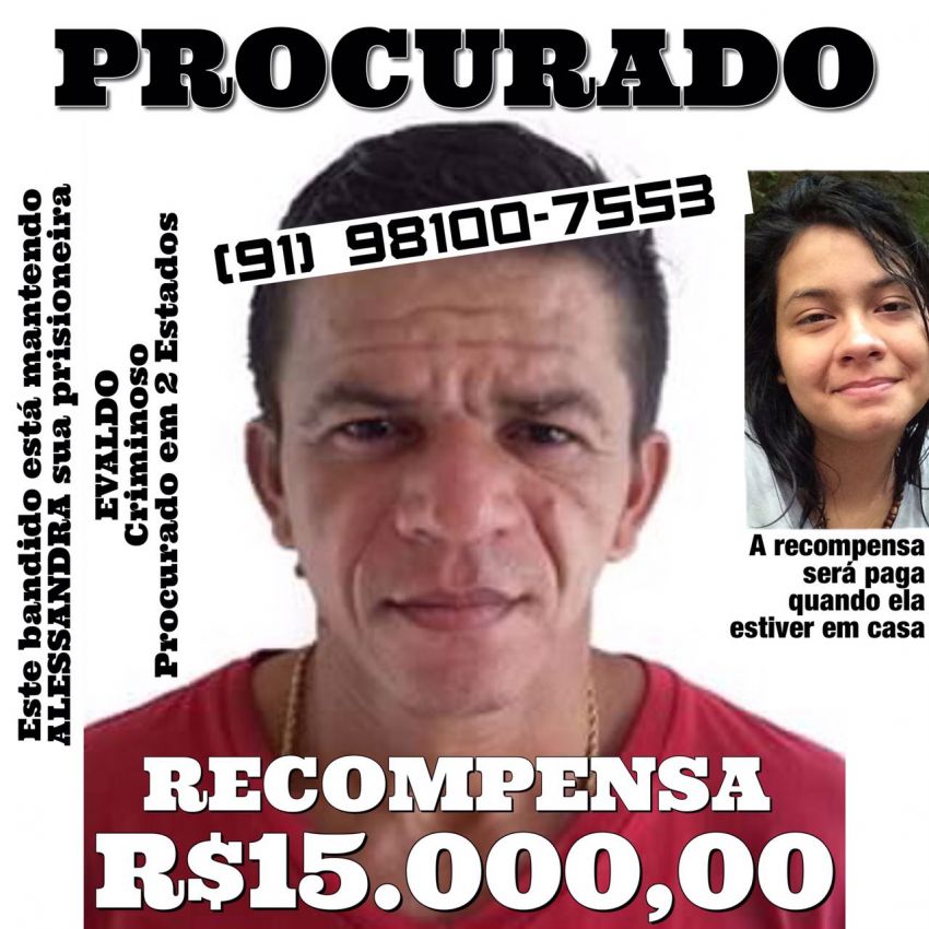 Evaldo Costa da Silva, 39 Anos, sequestrou em Ananindeua, região metropolitana de Belém. A Jovem Alessandra Ferreira Ramos, 16 anos.