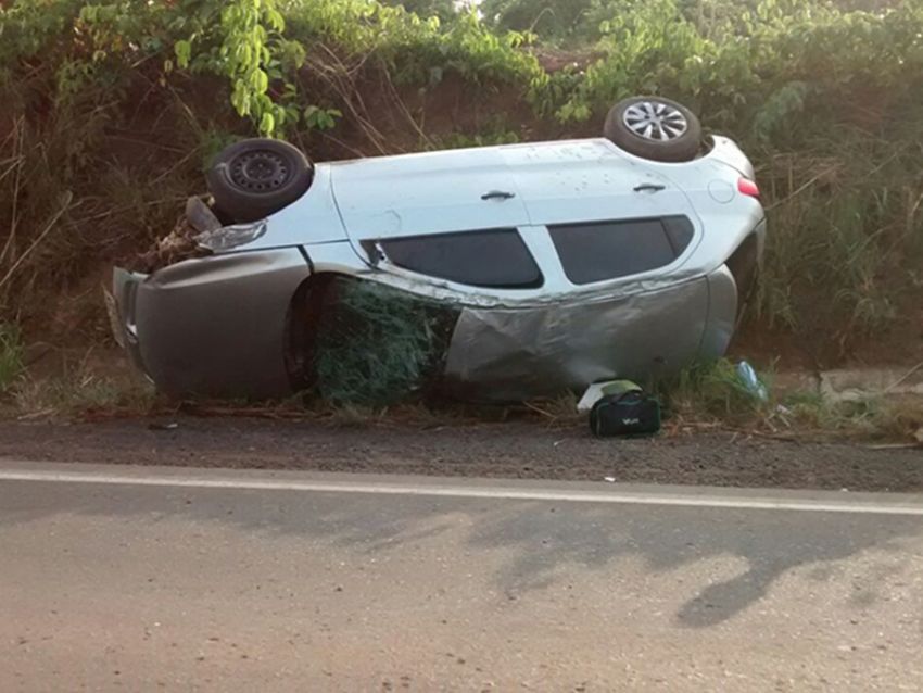 Segundo informações preliminares, o motorista estaria em alta velocidade e perdeu o controle do veículo que ocasionou o capotamento no acostamento da rodovia.