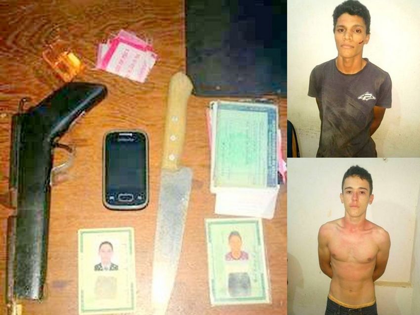 Uma perseguição policial terminou com dois jovens presos, na cidade de Itinga-Maranhão, por volta das 21hs50 minutos da noite desta quinta-feira, 29/12. Segundo informações, a ação policial aconteceu na Avenida Presidente Médici centro da cidade, nas proximidades da Jerusa onde a PM conseguiu interceptar e prender os dois jovens infratores. A dupla foi identificada como: Daniel Vieira de Souza Silva e Marciel Mendonça de Jesus, ambos são maiores de idade, eles são suspeitos de praticarem vários roubos. Eles estavam em uma moto Honda/CB 150 FAN vermelha de PLACA: NXG-4921 - ITINGA DO Maranhão. E com os dois a polícia encontrou uma arma de fogo de fabricação caseira e uma faca.
