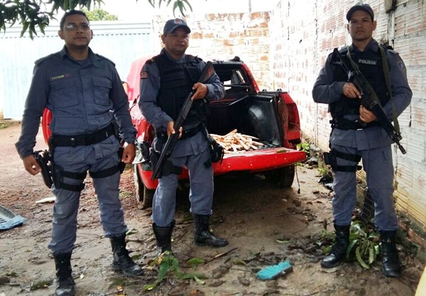 Diante da situação obscura, os policiais militares resolveram fazer uma busca minuciosa nos compartimentos do veículo (Saveiro vermelho) e encontraram aproximadamente sessenta 60 bananas de dinamite dentro da lataria do carro. Os quatro suspeitos (as) estão detidos na Delegacia onde devem prestar mais esclarecimentos ao Delegado Regional que Investiga o caso.