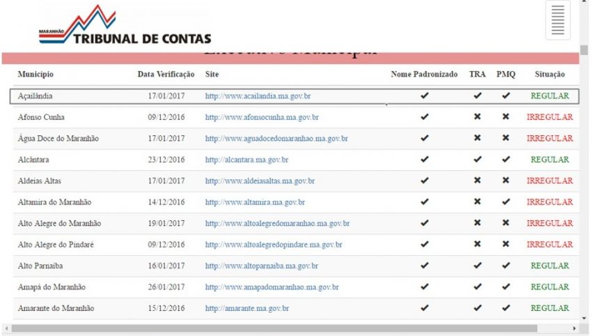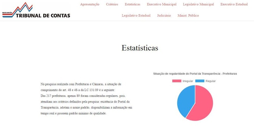 Subiu de 33 para 89 o número de municípios maranhenses em situação regular em relação aos portais da transparência. O número resulta da segunda avaliação feita pelo TCE com o objetivo de fiscalizar o cumprimento da legislação relativa à transparência fiscal. Com base na Lei Complementar 101/00 (LRF), acrescida do artigo 73 – C, incluído pela Lei Complementar 131/09 (Lei da Transparência), o Tribunal de Contas do Estado (TCE-MA) instituiu um sistema de acompanhamento permanente dos sítios eletrônicos dos seus fiscalizados.