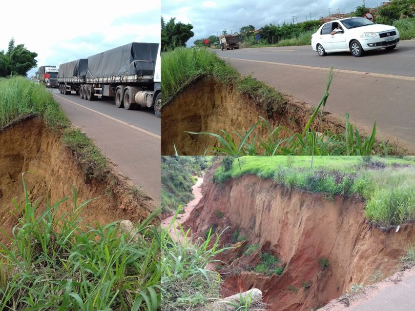 Uma grande erosão se formou as margens da BR-010 em Açailândia na saída para Itinga do Maranhão. (Próximo a Centro de Zoonoses da cidade)