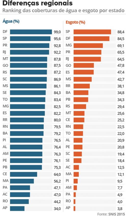 Segundo o levantamento do SNIS, no tratamento de esgoto, o Maranhão só fica à frente de estados como Pará, Acre, Rondônia e Amapá, considerado o pior em assistência no serviço. Quando o assunto é água, o Maranhão sobe uma posição e fica à frente do Piauí. O Maranhão tem 56,2% de cobertura neste serviço, enquanto o Amapá é o pior, com irrisórios 3,8%.