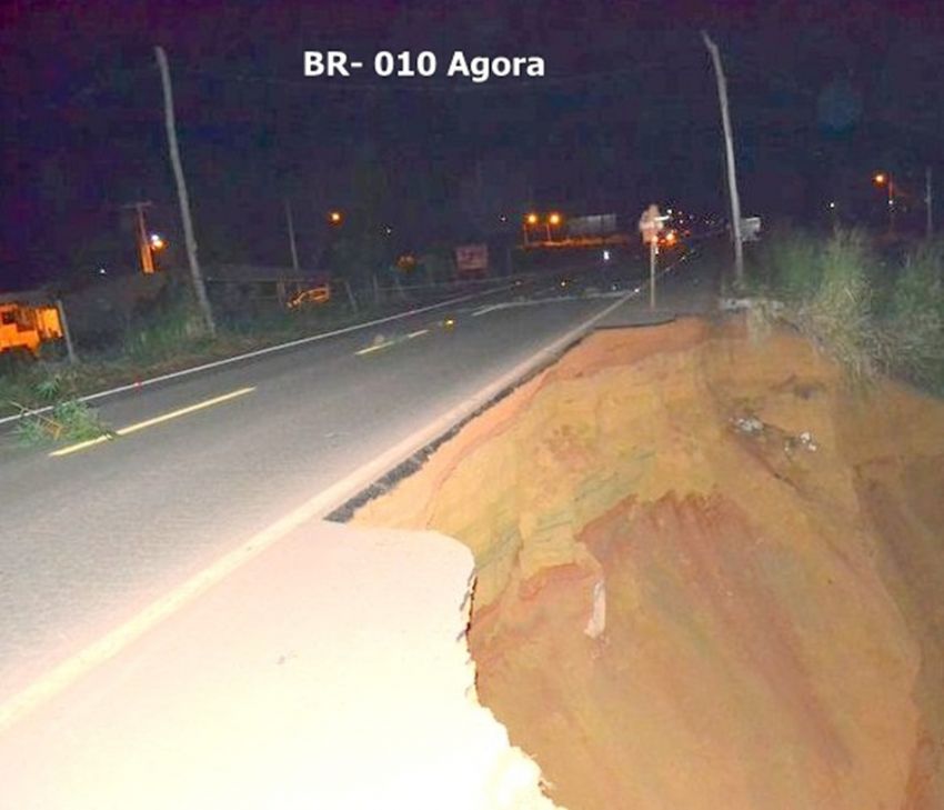 Uma equipe do DNIT era aguardada no local ainda esta noite para avaliar o comprometimento da rodovia, pois antes da interdição os veículos estavam passando com sério risco de desmoronamento.