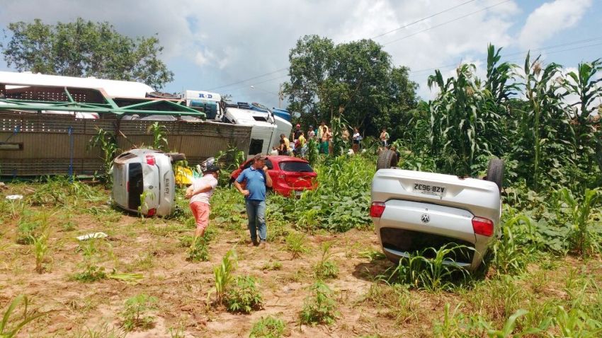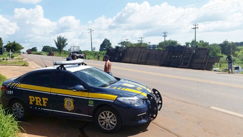 Por volta das 13h45 de hoje, sexta-feira (24), entre os municípios de Imperatriz e Açailândia, um veículo cegonha que vinha de Belém/PA com destino a São Paulo/SP, apresentou possível defeito mecânico após passar por uma lombada, momento em que o condutor informou perder o controle do veículo e tombou fora da pista, na entrada do município de São Francisco do Brejão, km 299 da BR 010. Os oito veículos que eram transportados sofreram danos, cinco deles foram arremessados fora do semirreboque. Uma equipe da PRF compareceu ao local do sinistro e aguardou até o destombamento da cegonha, sendo necessário interditar completamente a rodovia federal por alguns minutos.