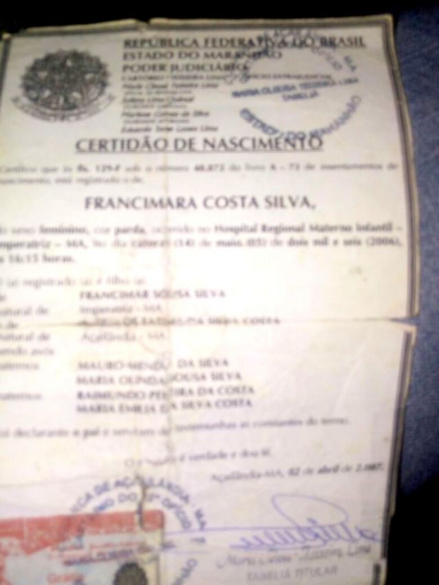 Hoje Francimara Costa Silva tem 11 anos. A sete (7) anos sua mãe Maria de Fátima da Silva Costa, a deixou na cidade de Ourilândia do Norte no estado do Pará e disse que voltaria para a cidade de Açailândia no Maranhão, para resolver alguns assuntos, mas nunca mais foi vista.