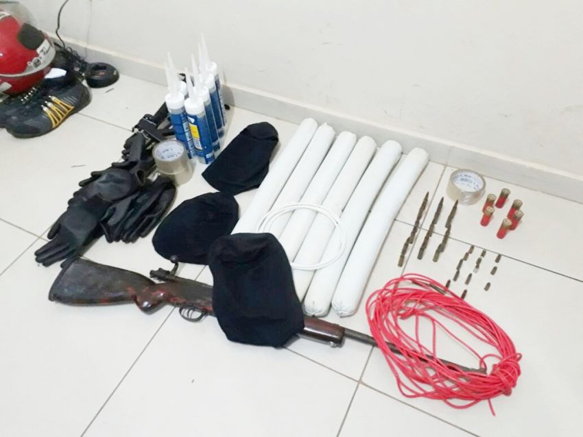 Nove pessoas foram detidas, além da apreensão de explosivos, fuzil, munição e veículos.