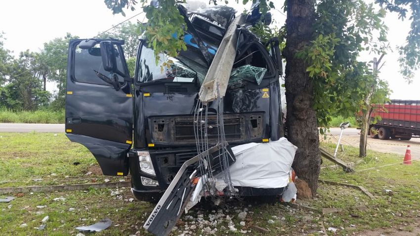 Governador Edison Lobão/MA - Na última Segunda-feira (22), por volta das 10h35, uma Honda CG/160 de cor vermelha seguia o fluxo normal no Km 232 da BR 010 quando entrou no acostamento para, em seguida, cruzar a rodovia com intuito de adentrar em um posto de combustíveis. Porém, o condutor da moto, um senhor de 70 anos de idade, que sofreu lesões graves (teve o braço esquerdo, a perna esquerda e duas costelas quebradas), não esperou a passagem da carreta que vinha logo atrás e deu início ao cruzamento da pista, momento em que a carreta, para evitar uma forte colisão, virou para a esquerda, colidindo apenas o semirreboque tipo "bau" na lateral da moto. O motorista da caminhão acabou perdendo o controle da direção e colidiu com um poste de iluminação pública e uma árvore que estavam posicionados em uma área verde do estabelecimento. O disco do tacógrafo do veículo de carga marcava a velocidade de 85 km/h no momento do impacto..jpeg)