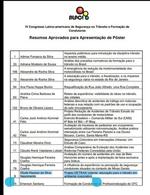 O Projeto Detran Volante, criado por educadores do Departamento Estadual de Trânsito do Maranhão (Detran-MA) para ambientes corporativos, foi selecionado a participar do IV Congresso Latino Americano de Segurança no Trânsito e Formação de Condutores. O evento será realizado entre os dias 17 e 18 de maio em Belo Horizonte, Minas Gerais, e reúne as melhores propostas para redução da mortalidade e morbidade causadas por acidentes de trânsito.