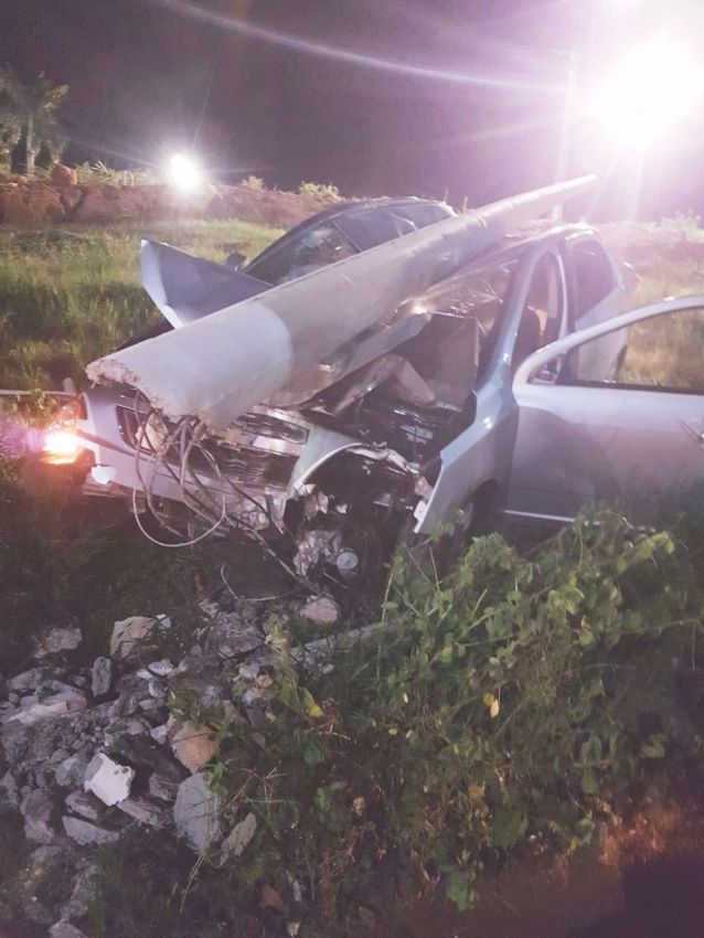 De acordo com informações de testemunhas, o motorista do veiculo de passeio (Chevrolet Cobalt, que não foi identificado) perdeu o controle do veículo quando vinha na BR- 222 sentido Vila Ildemar/ Centro, e acabou subindo no canteiro do Hospital São Sebastião e batendo de frente em um poste, que caiu em cima do carro..jpeg)