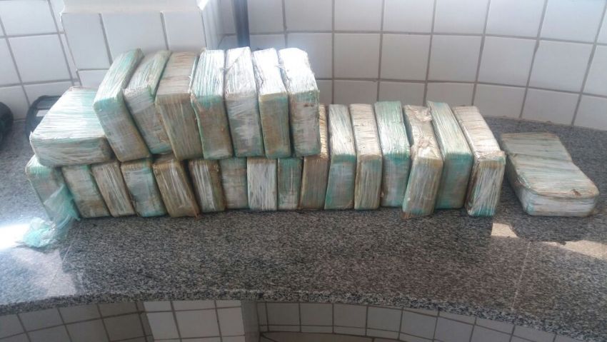 Durante busca detalhada no interior do veículo, os policiais acharam em um compartimento oculto, entre o banco traseiro e a parte onde fica o motor do carro, 25 kg de substância semelhante à pasta base de cocaína. A droga estava dividida em 25 tabletes, pesando 1 kg cada.