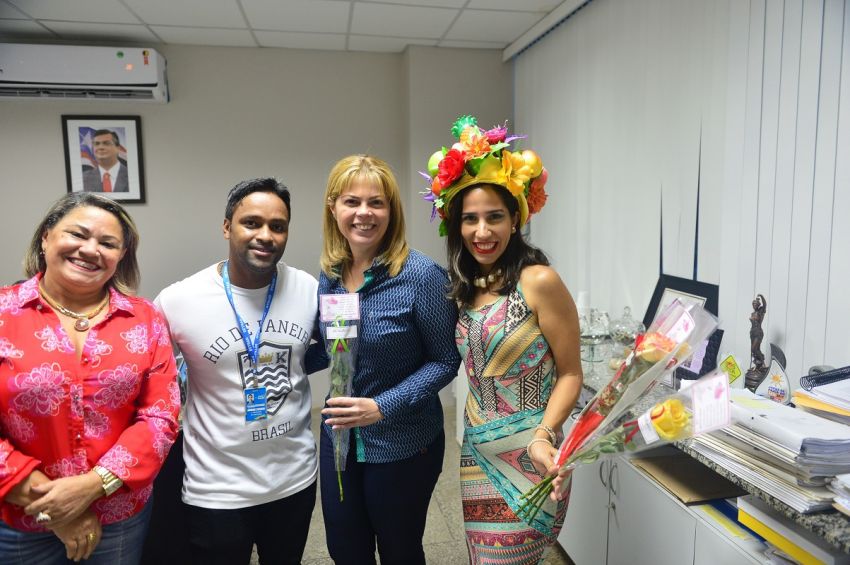 A programação especial teve início às 8h30 com a entrega de rosas às servidoras e usuárias da área do Atendimento e nos demais setores do órgão. Vestida de Carmen Miranda, a servidora Ariana Melo, da Coordenação de Educação para o Trânsito, entregou cartões com mensagens de reconhecimento e agradecimento.