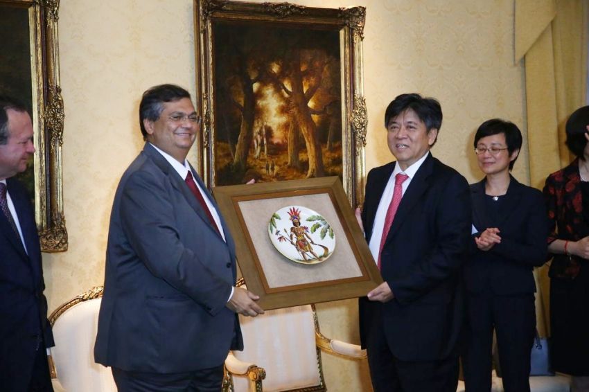 O embaixador da China no Brasil Li Jinzhang e comitiva formada por 40 pessoas, entre diplomatas, empresários e jornalistas chineses foram recebidos ontem quinta-feira (15) pelo governador Flávio Dino, no Palácio dos Leões.