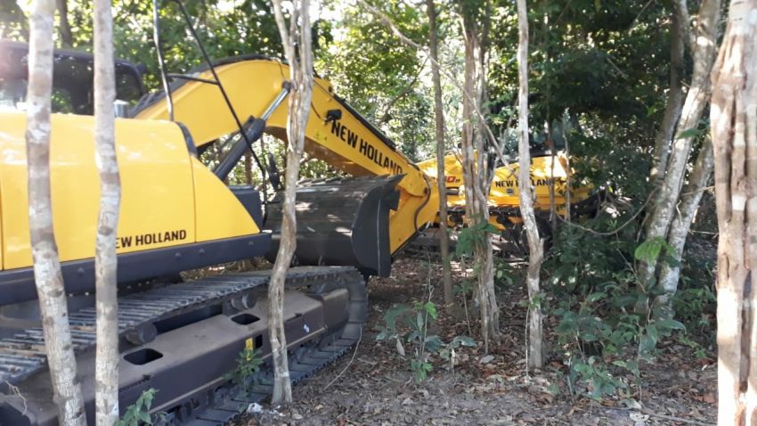Em continuidade às diligências, a equipe da DERFRVA-GURUPI se deslocou até a cidade de Bom Jesus das Selvas/MA, onde com o apoio da 9ª Delegacia Regional de Açailândia, sob o comando do delegado Murilo Lapenda, apreendeu neste sábado (23), uma Escavadeira New Holland 215, um Trator de Esteira New Holland modelo D-140, além de uma prancha Randon (apresentando placa adulterada/Dublê), objetos avaliados em mais de RS 800.000,00 e que haviam sido roubados no último dia 09 de junho, na Rodovia BR-153, Município de Colinas/TO.