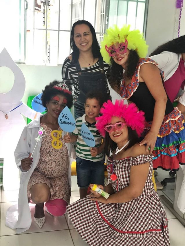 os profissionais da saúde do município que se envolveram diretamente na campanha, fazendo panfletagem, informando sobre a importância da vacinação, montando uma força tarefa com equipe nas ruas, fazendo pedágio, bem como na praça do Mercado Municipal, onde distribuíram panfletos e repassaram orientações sobre a vacina para adultos e criança durante todo o dia”, ressaltou Adriana Parra.
