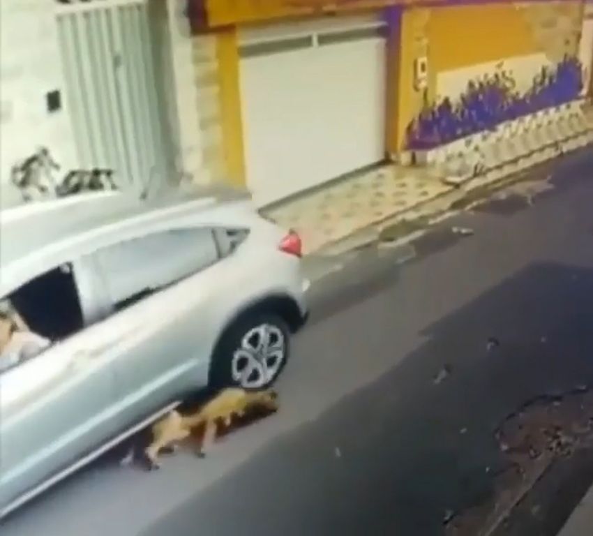 Após ter evitado o ataque dos pastores alemães, a enfermeira continuou seguindo Peppe e Dukesa com o carro. É nesse momento que Giselly aparece com o carro em baixa velocidade em uma rua do bairro Residencial Pinheiros e atropela os dois cachorros. Veja no vídeo.