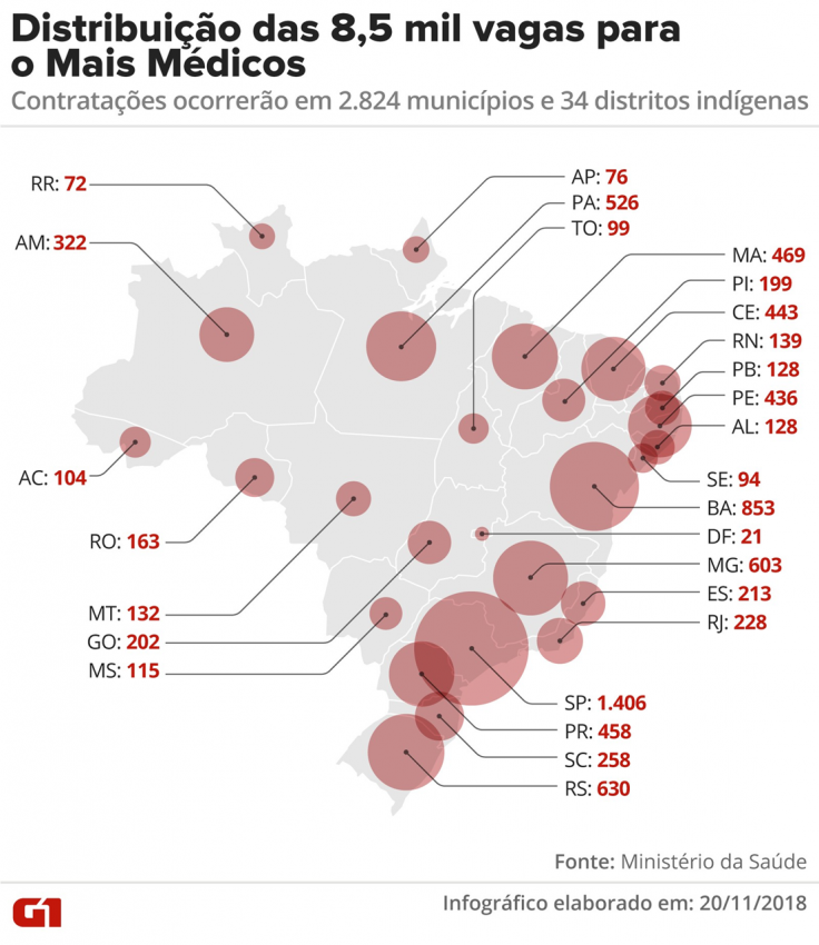 • Os médicos devem iniciar as atividades nos municípios a partir de 3 de dezembro; a data-limite é 7 de dezembro;