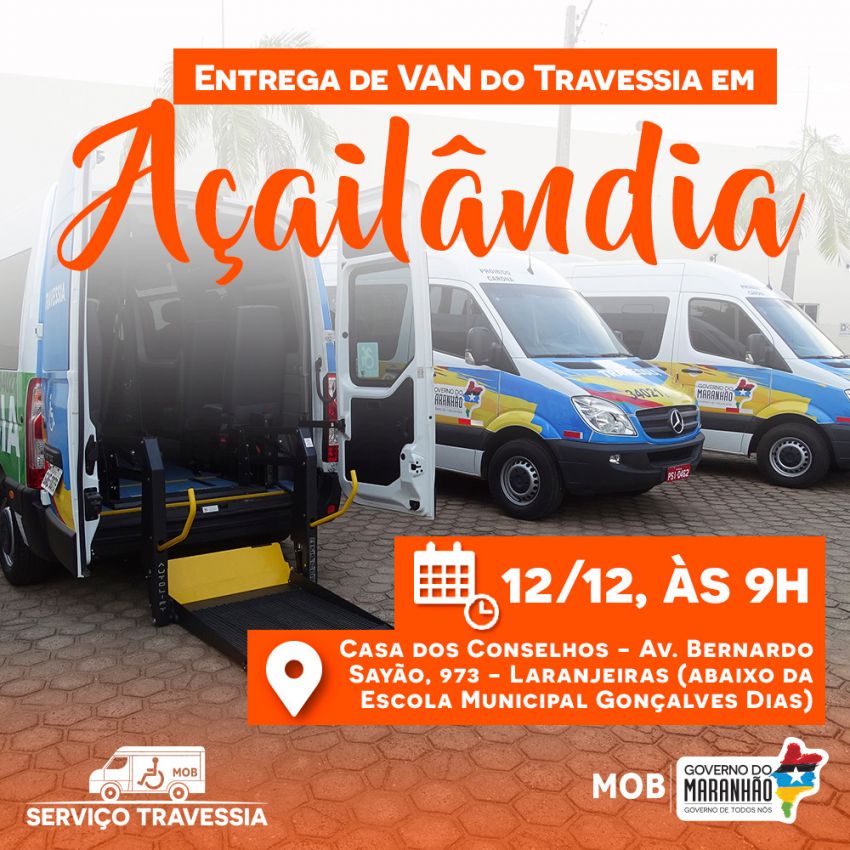 O Travessia inaugura suas atividades em Açailândia, na quarta-feira (12), a partir das 9h, na Casa dos Conselhos. Na solenidade, será entregue uma van. Prosseguindo o cronograma de aniversário, a sede do Travessia em Imperatriz será contemplada com cinco veículos novos e adaptados. Quatro vans e uma minivan para atender crianças com deficiência em neurodesenvolvimento (microcefalia e hidrocefalia). “Esses veículos vão garantir o transporte gratuito de pessoas com deficiência, renovando a frota de atendimento na área metropolitana da Imperatriz”, pontou o presidente da MOB.
