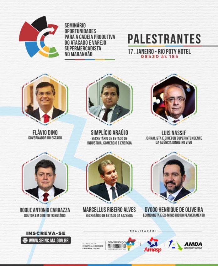 Além do secretário Simplício Araújo, estão confirmados para o evento o governador Flávio Dino; o professor titular da PUC/SP, Roque Antonio Carrazza; o ex-ministro do planejamento, Dyogo Oliveira; o secretário de Estado da Fazenda, Marcellus Ribeiro; e o jornalista e cronista Luis Nassif.