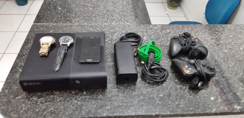 No local a polícia localizou um aparelho de jogos XBOX, 02 controles, 02 relógios de pulso e um celular marca SAMSUNG, diante das evidencias, o rapaz foi conduzido para a delegacia regional de Açailândia sem lesões corporais.