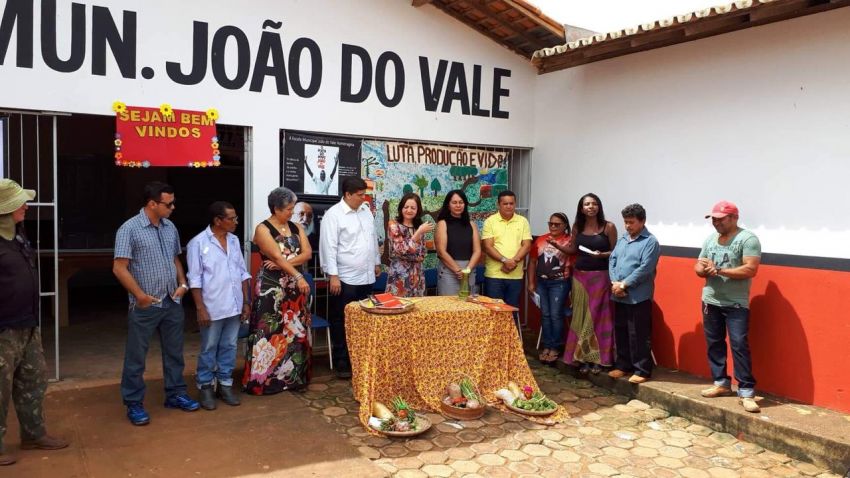Estiveram presentes no evento o secretário de Infraestrutura Divaldo Farias que vistoriou o trabalho de reforma da escola, a assessora da secretária de Educação Enir Martins, e a coordenadora da Educação do Campo Naura Lúcia Mendonça Costa que foram as responsáveis e incentivadoras do projeto de reforma e ampliação da Escola João do Vale.