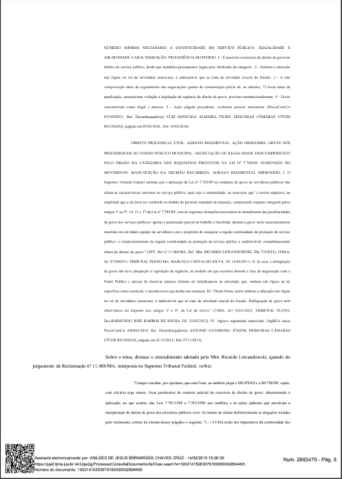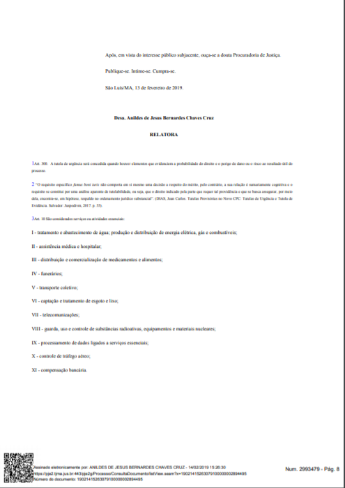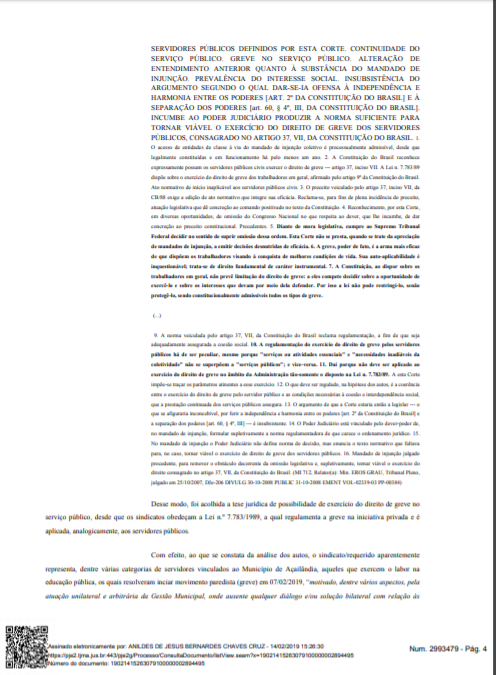 Nestes termos entende a Dra Anildes Cruz que, a realização de uma paralisação integral das atividades, acabaria por violar o princípio da supremacia do interesse público, isto porque o interesse privado, ainda que se reconheça a sua importância, estaria a dar ensejo à descontinuidade do Serviço Público.